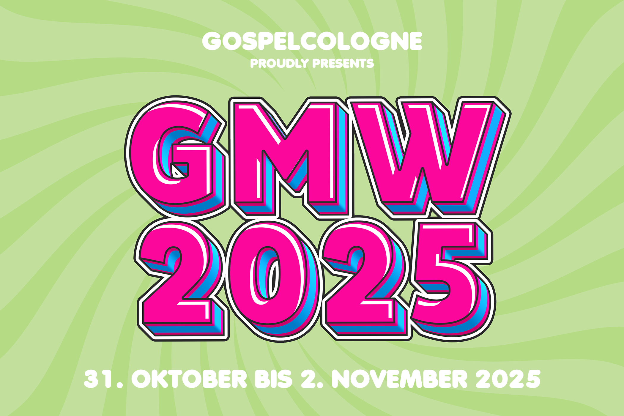 Der mittlerweile 26. Gospelmusicworkshop findet vom 31. Oktober bis zum 1. November 2025 in der Friedenskirche statt. Wie schon in den Jahren zuvor erwartet die Fans der Kölner Gospelszene ein intensiver und spannender Workshop, an dessen Ende das gemeinsames Konzert steht. Beginn ist wie bisher auch am Freitag, das Abschlusskonzert in der Friedenskirche - Baptisten mitten in Köln, dann am Sonntagabend um 19:00 h.